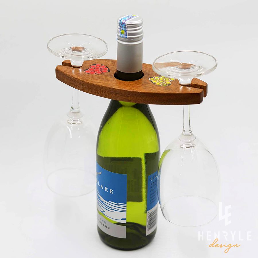 Giá Treo 2 Ly Rượu Vang Ellipse Bằng Gỗ Họa Tiết Bút Chì Màu