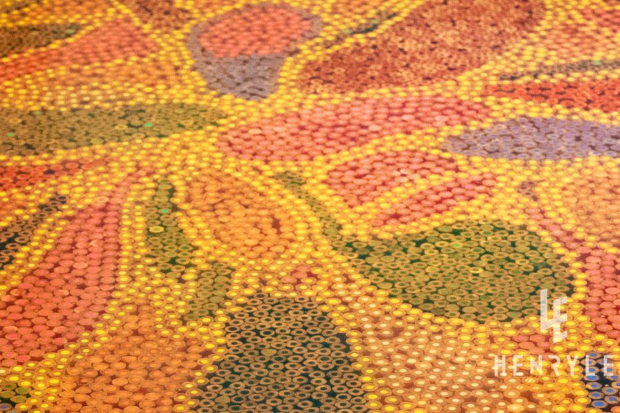 Mặt trên của mặt bàn là sự kết hợp tài tình của hơn 7,000 mẩu bút chì và keo epoxy trong suốt nổi bật lên những cây bút chì màu đa sắc, hiển thị 3D tuyệt đẹp. Mặt dưới được sơn màu đen huyền bí làm nên tôn lên những cây bút chì màu sặc sỡ đa sắc
